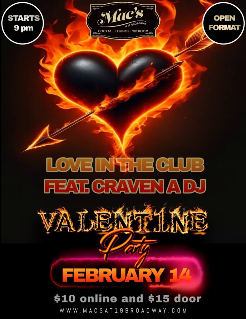 Join us at Mac’s at 19 Broadway for LOVE IN THE CLUB, a Valentine’s Party built for movement, energy, and real nightlife vibes. Whether you’re celebrating with a date, rolling deep with friends, or flying solo, this is the place to be on Friday, February 14.