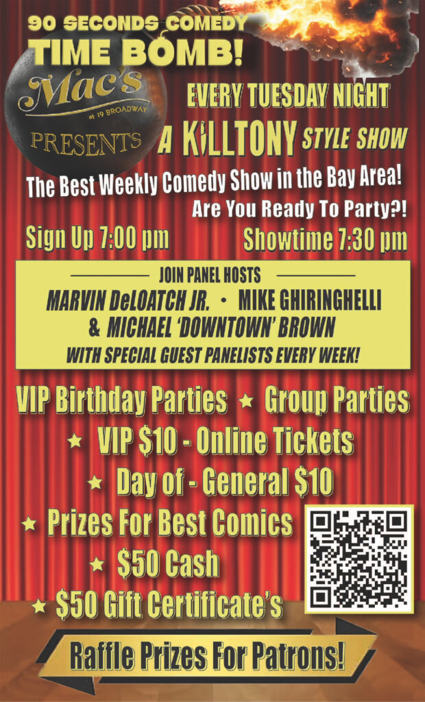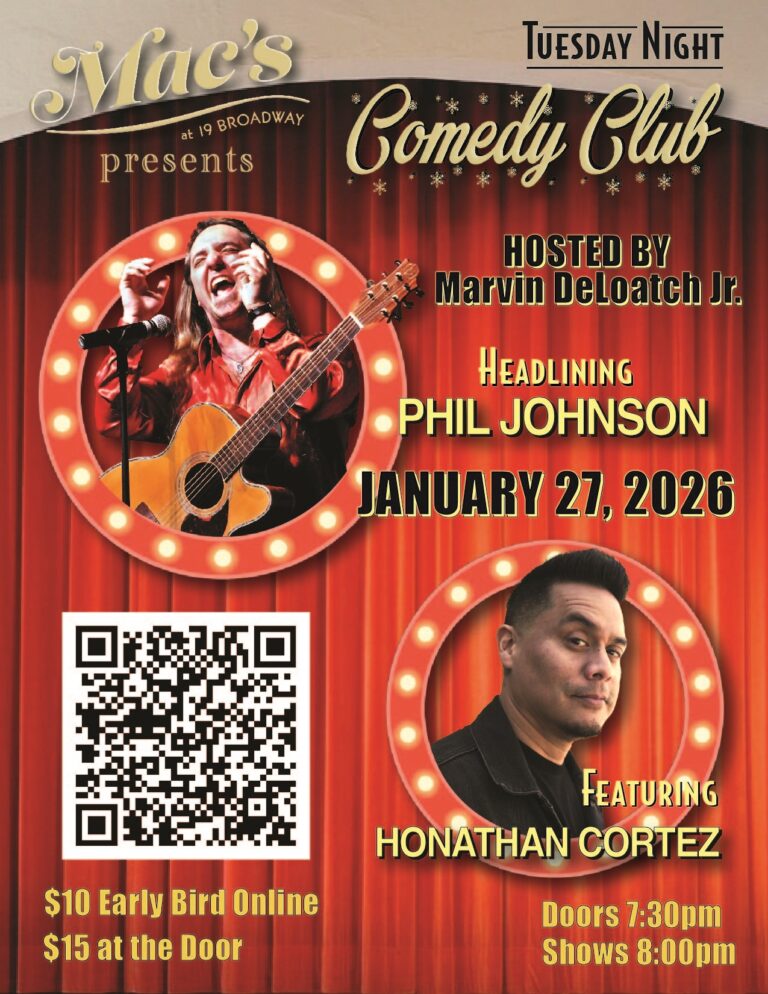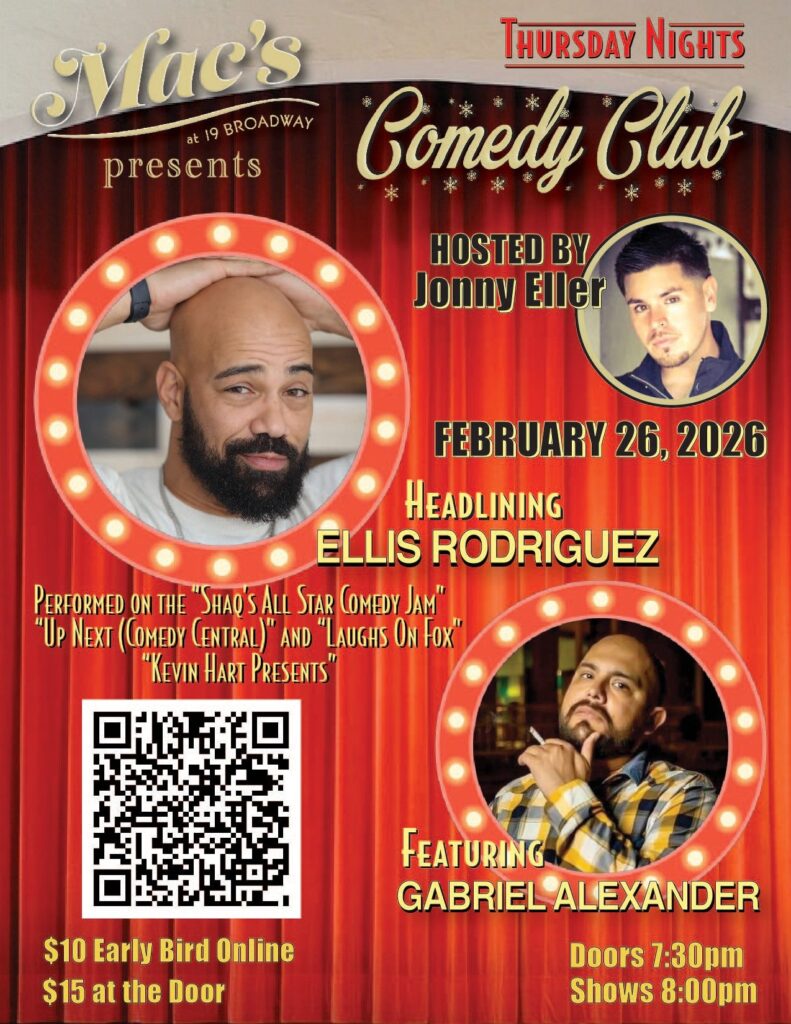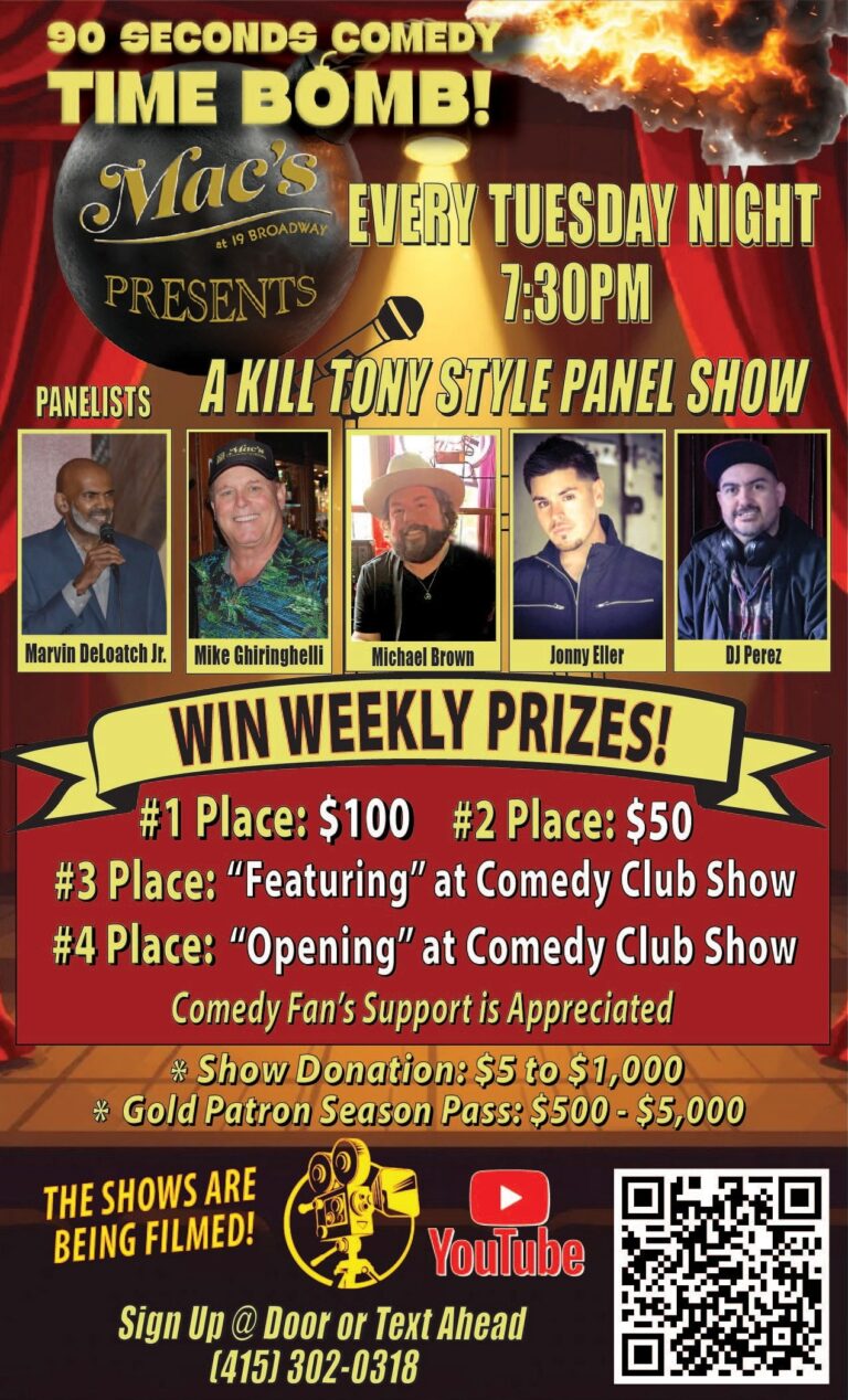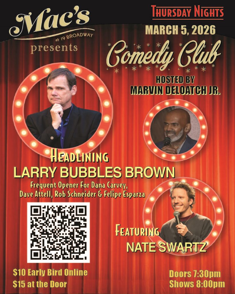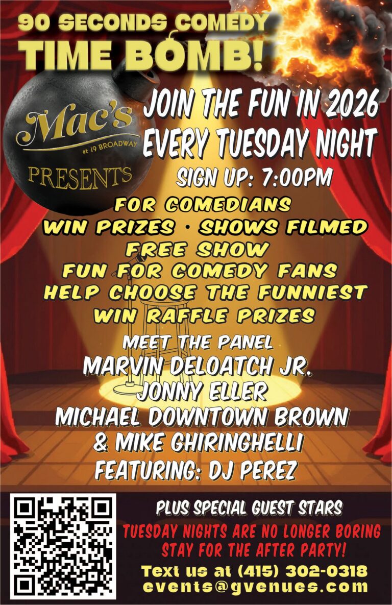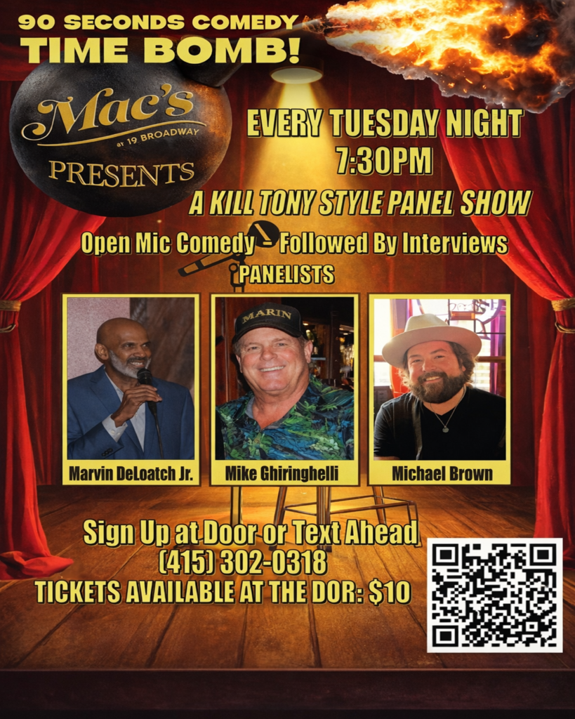 Mac’s at 19 Broadway is more than music — it’s where laughter takes the stage. From national headliners to Bay Area favorites, our comedy nights bring unforgettable energy to Fairfax. Grab a drink, settle in, and enjoy intimate stand-up shows in Marin’s legendary nightlife venue.